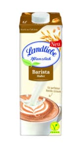 Die Marke Landliebe ergänzt ihr Sortiment erstmals um vier pflanzliche Produkte. Das Besondere: Die Drinks sind reich an Nährstoffen, die Sorten Mandel, Mandel ohne Zucker und Hafer punkten zudem mit einem besonders hohen Proteingehalt, die Variante Barista Hafer mit hervorragender Schaumbildung.