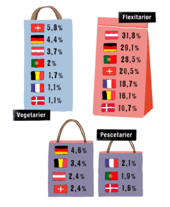 Die Zahl der sogenannten Flexitarier, die bewusst seltener Fleisch konsumieren, liegt europaweit inzwischen bei 22,9%. Zwar ernähren sich in Europa bisher nur 1,9% der Menschen vegan und 3,1% vegetarisch, jedoch können sich 57,1% der europäischen Flexitarier vorstellen, in Zukunft auf eine vegetarische und 7,9% auf eine vegane Ernährungsweise umzustellen. Nahezu 30% der befragten Deutschen geben an, sich flexitarisch zu ernähren. Die Studienergebnisse decken sich damit mit anderen deutschen Ernährungsstudien.