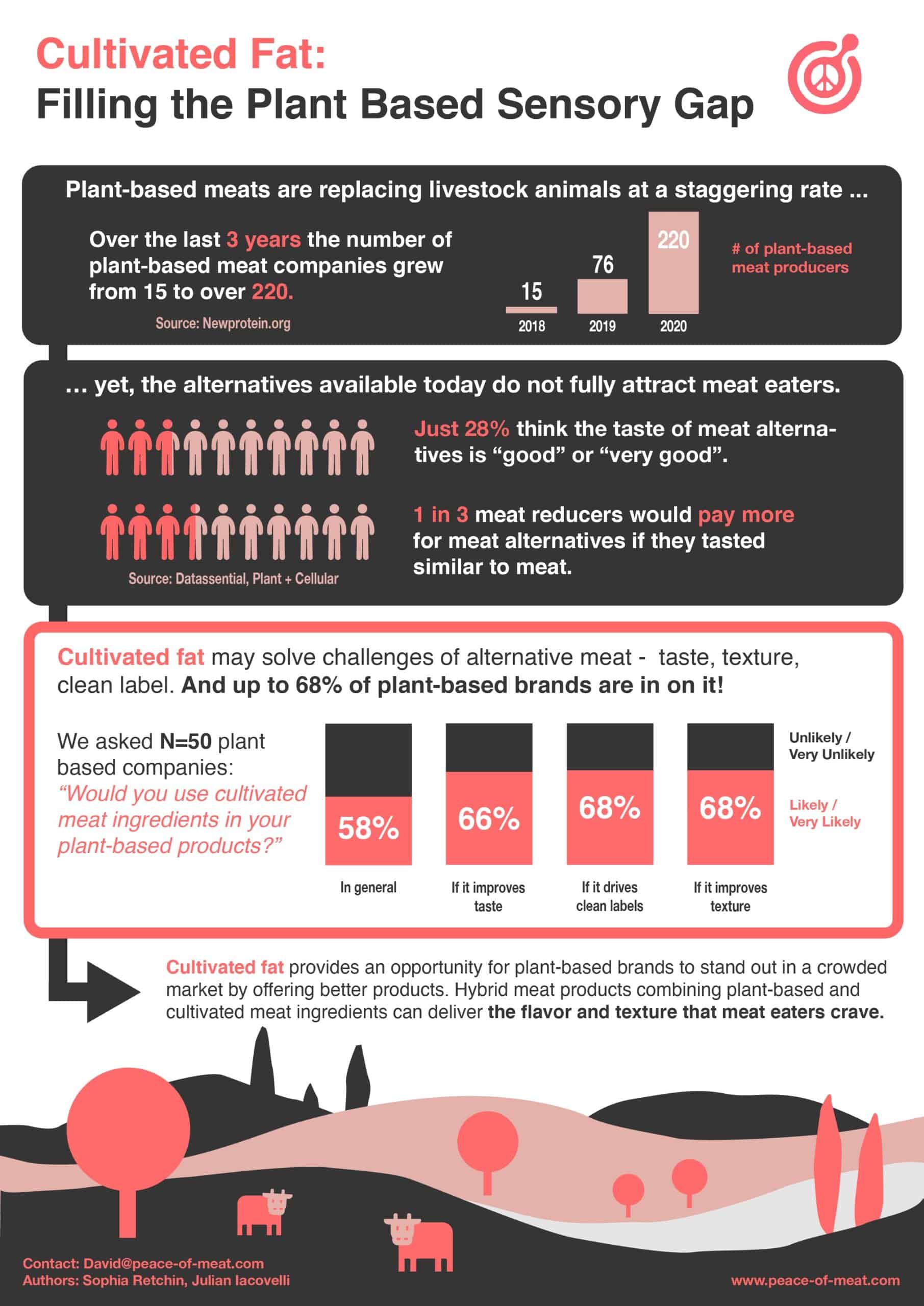 “​Establishing a dialogue with over 50 companies in the plant-based field was eye-opening. The impact this industry has on animal welfare and sustainability is tremendous, yet convincing meat-eaters to change diets permanently remains a challenge. Cultured fat might be the missing ingredient creating real meatiness, and the plant-based industry is very receptive to this innovation,​” comments Co-founder and Managing Director David Brandes.